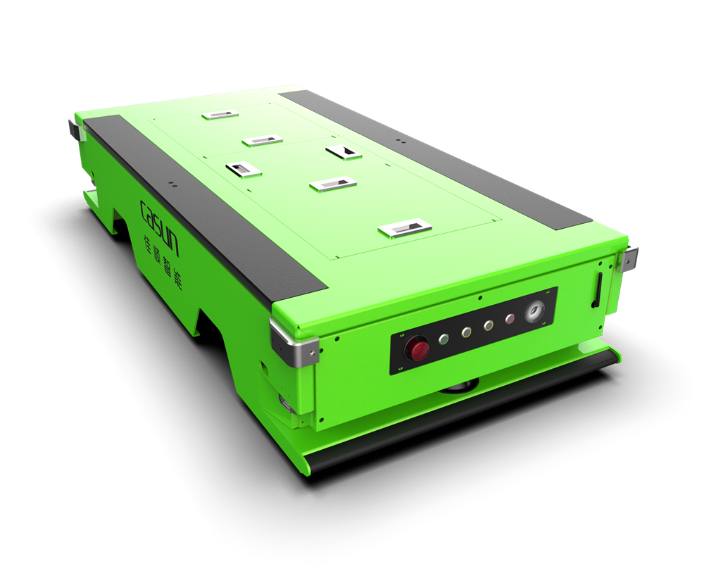 C2-32全向潜伏举升式AGV潜伏至物料车下方,通过顶升的方式抬起整个物料车进行搬运,具备原地旋转,侧向移动功能,负载能力可达2000KG,并可根据不同的场景适应二维码与磁导航的导航方式。